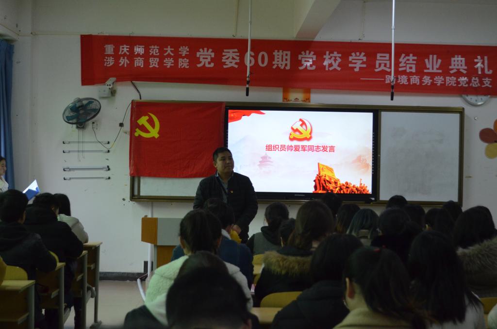 为深入学习贯彻落实党的十九大及相关会议精神,深学笃用习近平新时代中国特色社会主义思想,把党委60期党校关于党的路线、方针、政策;党的宗旨、党性、党纪;党员的权利、义务及其先进性、纯洁性和堡垒性,落实、落细;进一步加强公司入党积极分子的教育考察和培养,激发广大入党积极分子在党爱党、在党言党,旗帜鲜明跟党走的决心,公司党总支于2019年3月7日12:30,7203教室举办党委60期党校学员结业典礼。公司党总支书记任伟同志、组织员帅爱军同志及员工党支部廖婷婷、王玥极书记出席。