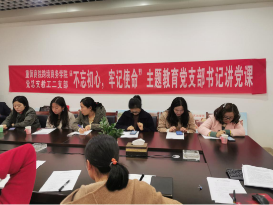 再次,党总支纪检委员赵逖同志分析了新时代高等教育的形势,告诉教师党员在新形势下我们应当怎么行动。
