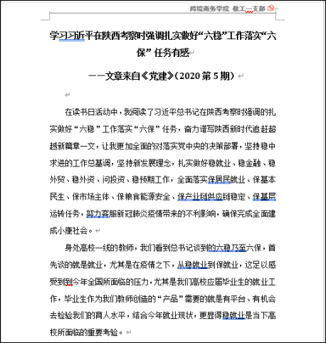 为进一步丰富疫情期间的组织学习生活,5月13日教工一支部利用支部QQ群组织开展了本月“支部读书日”主题活动,号召全体党员、入党积极分子在阅读中提高政治素养、善于思考,养成“好读书、读好书”的好习惯。