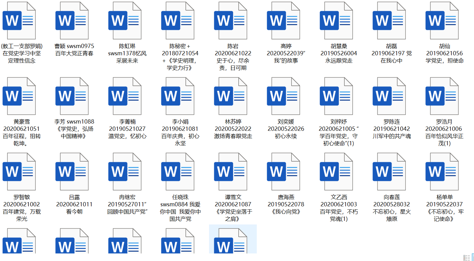 此次征文活动于2021年5月12日至5月30日期间收集征文,征文内容主要围绕党史、新中国史、改革开放史、社会主义发展史等方面,开展创作,题材不限。最终,共收到师生创作的32篇征文。
