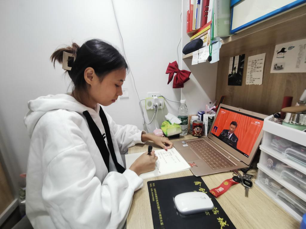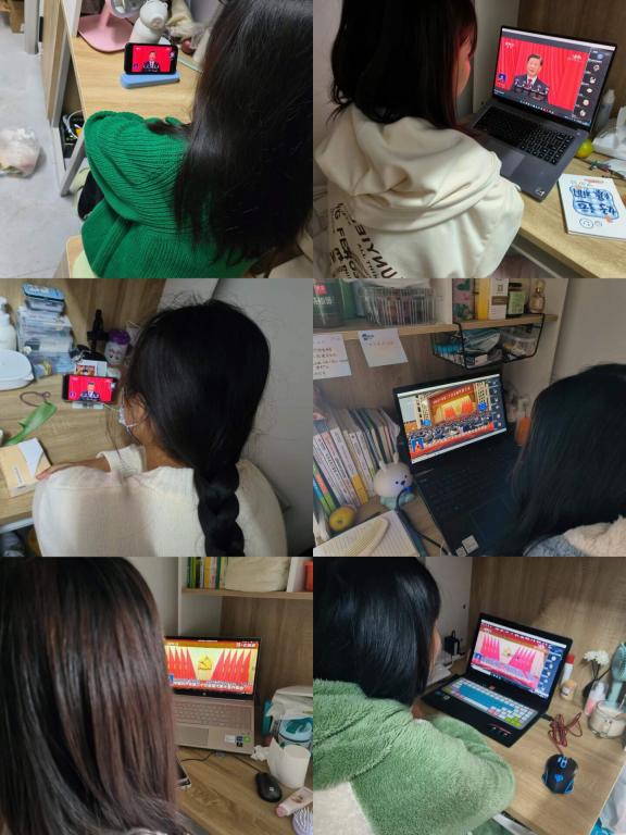我院师生通过电视、手机、网络等各种形式收听收看大会开幕会实况。