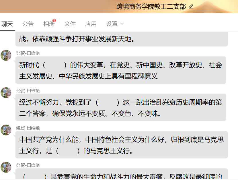 2022年10月20日下午,太阳成集团tyc234cc教工二支部开展了“聚焦二十大,初心永不褪色,使命历久弥新”主题党日活动。本次党日活动由田维艳同志主持,采取知识竞赛的方式开展,支部分为三个小组进行比赛,竞赛内容围绕党的二十大报告中的新观点、新论断、新思想等相关知识进行。比赛过程紧张激烈,党员同志们沉着应答。各小组你追我赶,不断掀起竞赛高潮。经过激烈角逐,最终由刘坤奇同志带领的第二小组摘得桂冠。