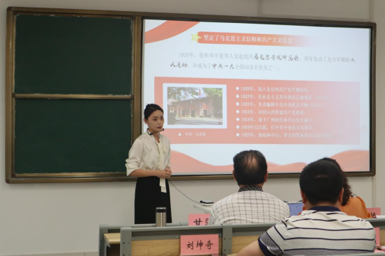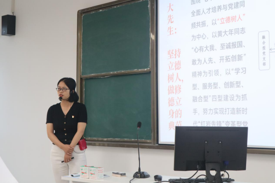 最后,教工二支部书记吴文平以“怀三感,建三风,以学增智”为题,鼓励教师党员做到提升政治能力、提升思维能力、提升实践能力。以姜丽娟女士救助失学、失足青年的感人事迹为例,表达了对员工、对教育的爱。经过五个支部书记的精彩宣讲,最终员工二支部书记段瑞获得第一名。