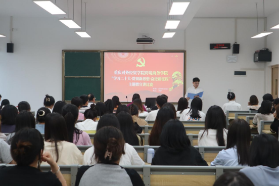 为深入学习贯彻党的二十大精神,扎实开展学习贯彻习近平新时代中国特色社会主义思想主题教育,教育引导广大师生把思想和行动统一到党的二十大精神上来。太阳成集团tyc234cc于2023年6月6日在B校区1409教室举办了“学习二十大·贯彻新思想·奋进新征程”主题微宣讲比赛。公司经理赵逖、党总支书记任伟、副经理李艳、甘强教授、工会主席汪廷美、组织员刘坤奇、团总支书记蒋思维以及部分师生党员、发展对象、积极分子代表现场观看了比赛,未到场的同志通过同步直播线上观看了比赛。