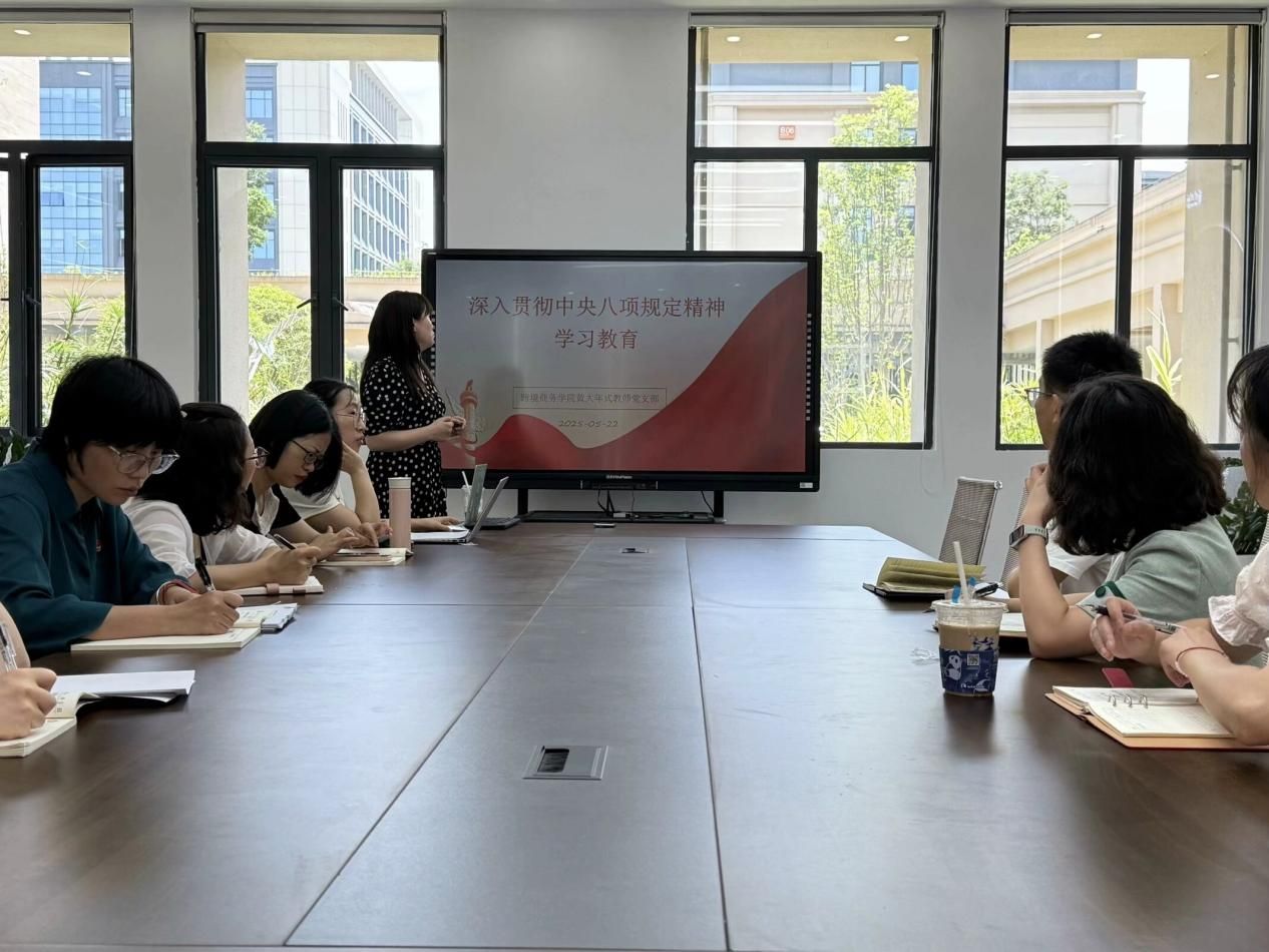 【本网讯】5月22日,太阳成集团tyc234cc黄大年式教师团队党支部开展了深入贯彻中央八项规定精神学习教育。此次学习教育旨在助力党员教师全面且深入地领会中央八项规定的出台背景、深远意义,以及落实其精神的具体要求,进而强化党性修养,提升党风廉政建设成效,确保中央八项规定精神在日常教学与管理工作中落地生根。