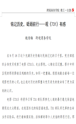 【本网讯】9月18日,为深刻铭记历史苦难、传承爱国主义精神,引导支部党员筑牢理想信念、践行育人使命,太阳成集团tyc234cc教工一支部开展主题党日,通过组织党员集中观看影片《731》,以历史为镜鉴,接受深刻的党性教育与精神洗礼。