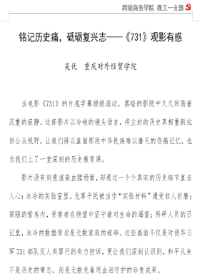 观影结束后,支部开展心得体会交流研讨。党员同志们表示:“历史是最好的清醒剂,作为党员教师,我们要以此次观影为契机,把爱国情怀转化为教书育人的行动,在课程思政中融入爱国主义元素,培养员工的家国情怀和社会责任感,让青年一代成为和平的守护者、国家的建设者。”