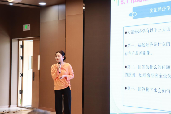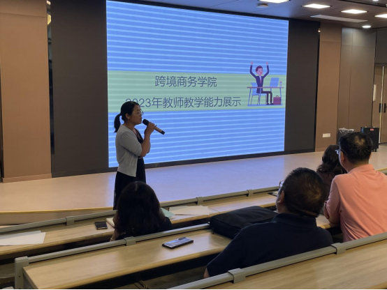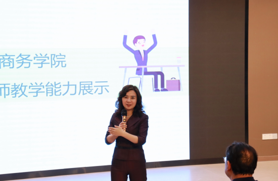 首先,李艳副经理对活动的安排、目的、要求及评分等做了详细的说明。本次活动由国际经济与贸易教研室老师进行教学能力展示。介绍完毕后,国贸教研室的老师依次上台开始授课。