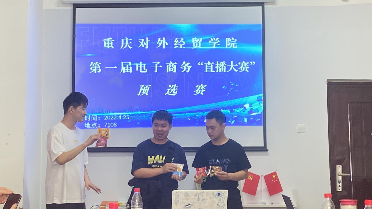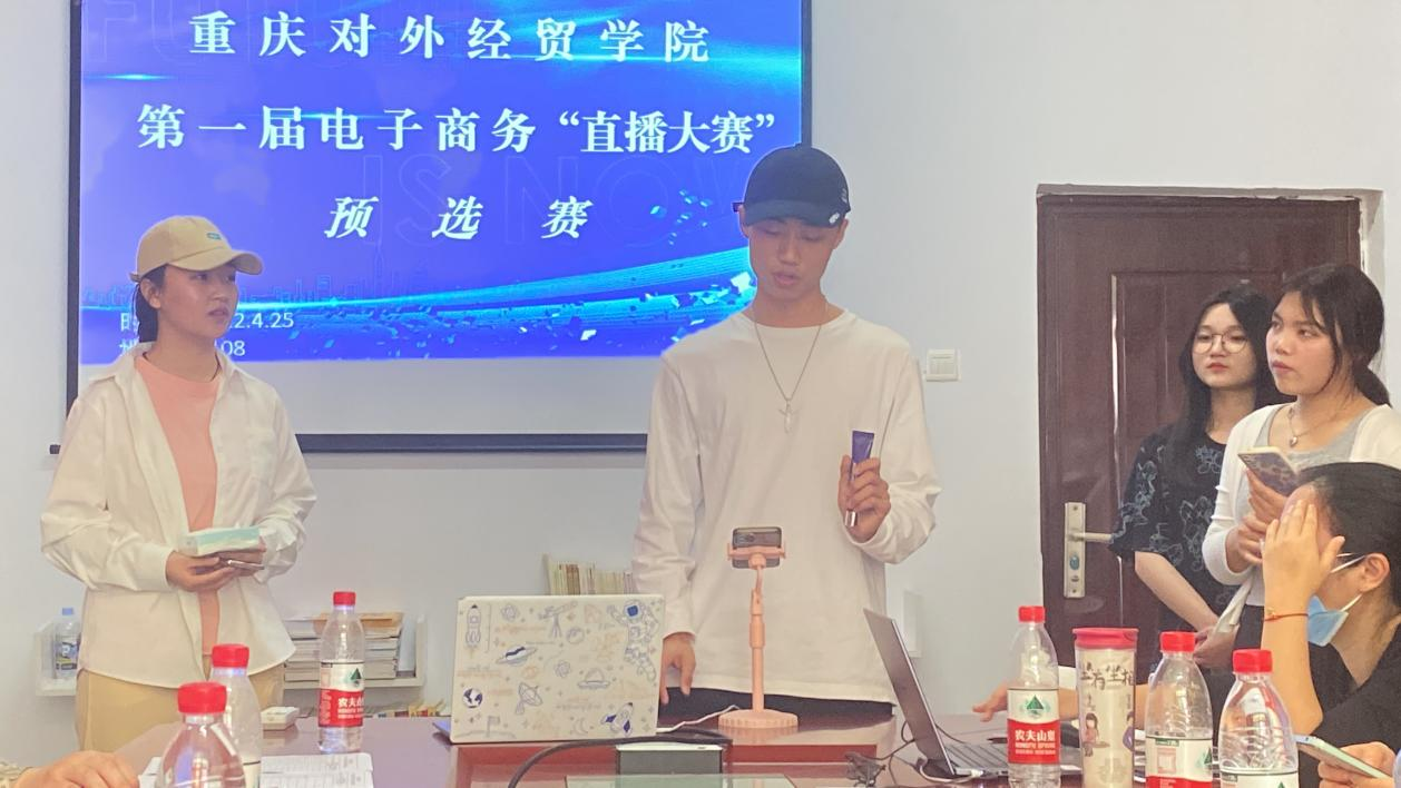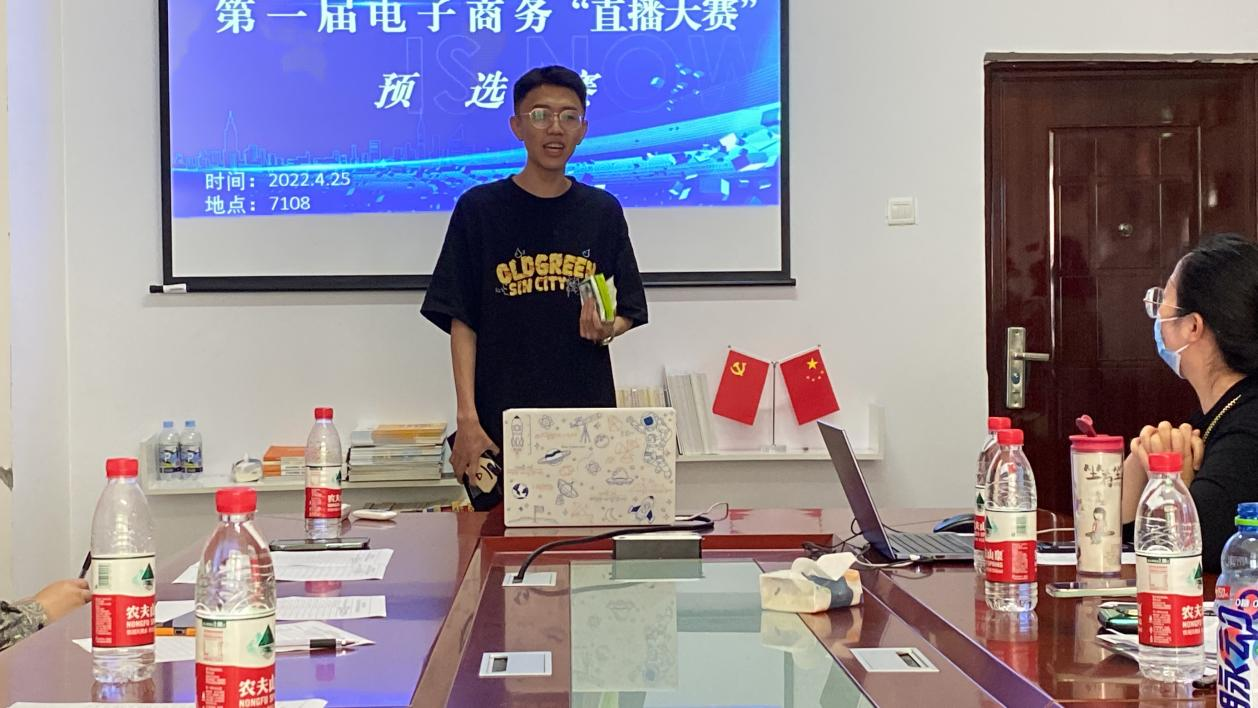 各团队在团队介绍、模拟直播带货以及评委提问三个环节中,施展才能,充分展现出独具风格的“主播风采”,最终19支团队顺利进入电子商务“直播带货”大赛正赛。