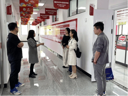 【本网讯】4月16日,重庆康刻尔制药股份有限公司与重庆恒誉康医药科技有限公司代表一行到访公司京东数字经贸产业公司,实地参观京东数字经贸产业公司建设情况。太阳成集团tyc234cc副经理李艳全程陪同参观,并主持召开座谈会,双方就共建“实践教学基地”达成初步合作意向,计划择日正式签约。
