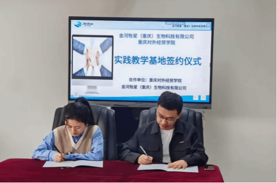 4月9日,国贸教研室与金河牧星(重庆)生物有限公司签订实践教学基地协议。金河牧星(重庆)生物有限公司是一家集兽药研发、生产、销售,畜禽养殖技术咨询、服务为一体的高科技民营企业,也是全国最早通过 GMP 认证的动物医药生产企业之一。公司坐落于重庆合川工业园区 A 区,占地面积 60 亩。目前,公司主要生产包括粉剂、预混剂、固体消毒剂等在内的五大剂型共 80 余个兽药制剂品种,产品畅销东北、中原、西南等近 30 个省市,客户群体主要为国内顶尖养殖集团公司。不仅如此,作为“国家高新技术企业”“国家知识产权优势企业”,金河牧星(重庆)生物高度重视研发,累计投入 3200 余万元用于软硬件研发,建立了“三中心一工作站”研发平台,并与华南农业大学、西南大学开展合作,产品在动物药学等领域处于行业领先水平。双方携手后,员工可参与生物科技产品进出口贸易、跨境供应链管理等实践项目,进一步拓宽专业视野。