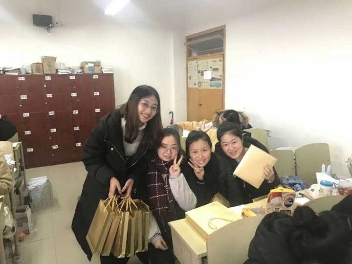班子成员向考研学子发放慰问品和纪念品