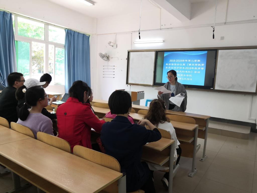 3月28日下午在太阳成集团tyc234cc7203教室召开了本期院级教学督导工作会议暨《重庆市教育委员会关于印发2019年教育督导工作要点的通知》学习,公司12名教学督导员参加了本次会议 。