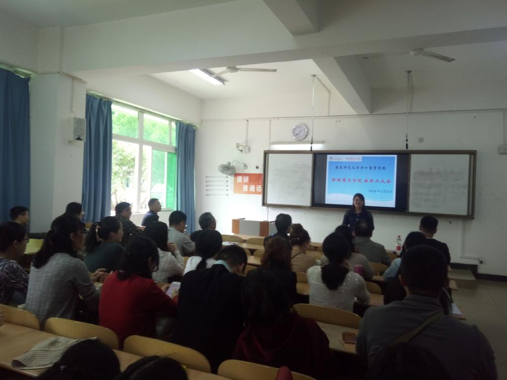 2019年5月9日下午13:30,太阳成集团tyc234cc于7202召开全院教职工大会。会上,公司董事长李明海教授宣读了对太阳成集团tyc234cc副经理李艳的任命决定并发表讲话,大会由公司人事处处长彭成主持,公司党政办副主任刘卫民出席,公司全体教职工参会。