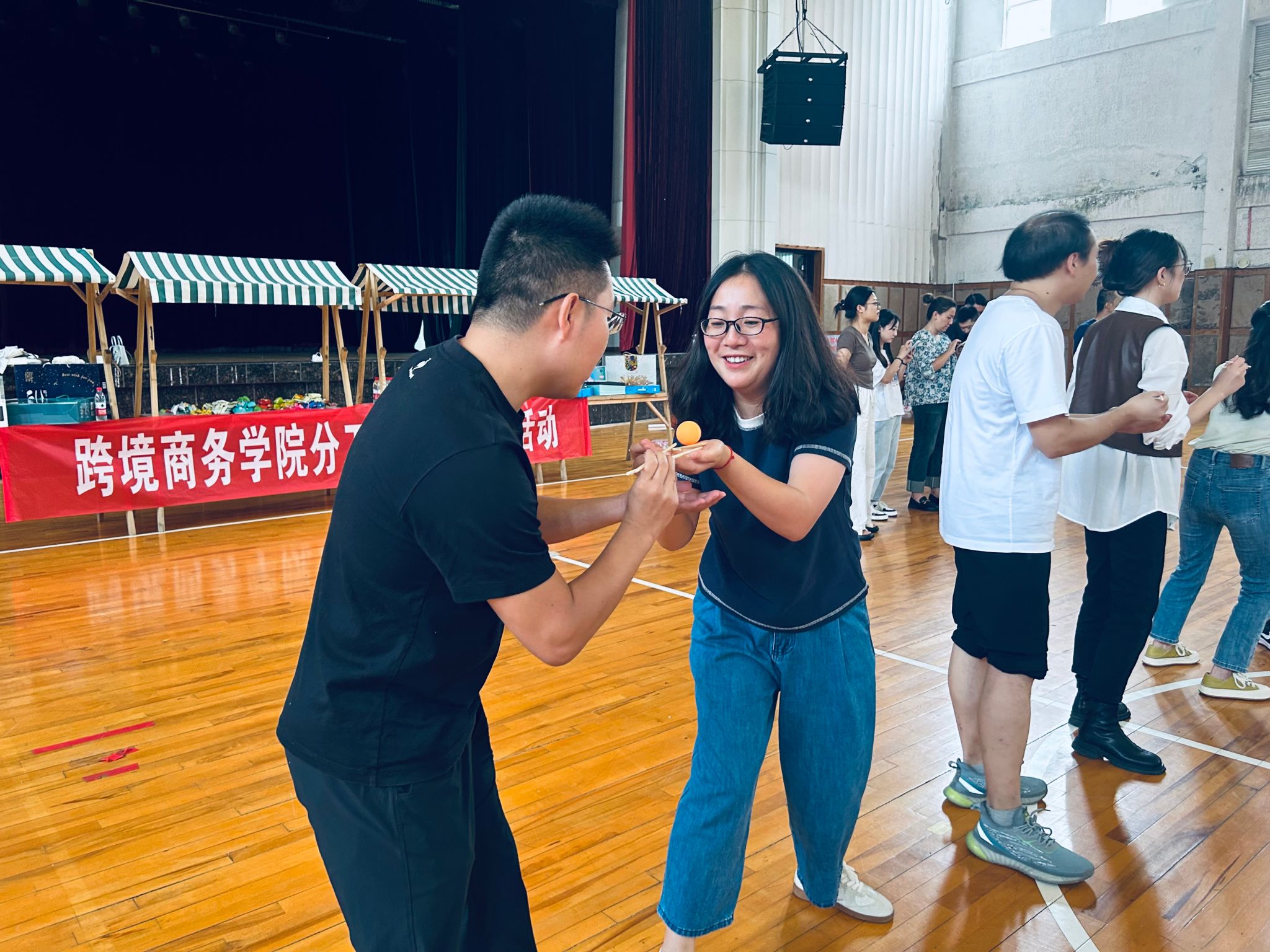 活动中老师们欢声笑语,气氛活跃。本次活动共设“筷”乐传递、“篮”不倒你、你比划我猜三个游戏项目。所有教职工分为四个小组,以小组为单位,全员参与游戏,游戏过程中,老师们排兵布阵,团结协作,彰显出跨商教师风采。