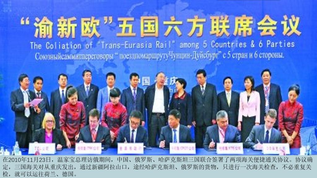 而且在2010年11月23日,中国、俄罗斯、哈萨克斯坦三国联合签署了两项海关便捷通关协议。协议确定,三国海关对从重庆发出,通过新疆阿拉山口,途经哈萨克斯坦、俄罗斯的货物,只进行一次海关检查,不必重复关检,就可以运往荷兰、德国。这也为运输提供了不少便利,节约了运输时间。